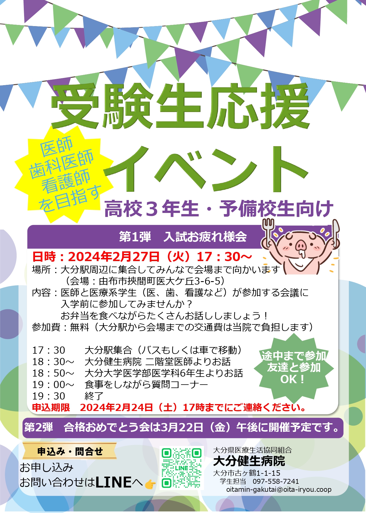 【大分健生病院】受験生応援イベント!入試お疲れ様会のお知らせ
