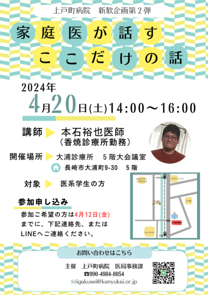 【長崎】上戸町病院|新歓セミナー「家庭医が話すここだけの話」