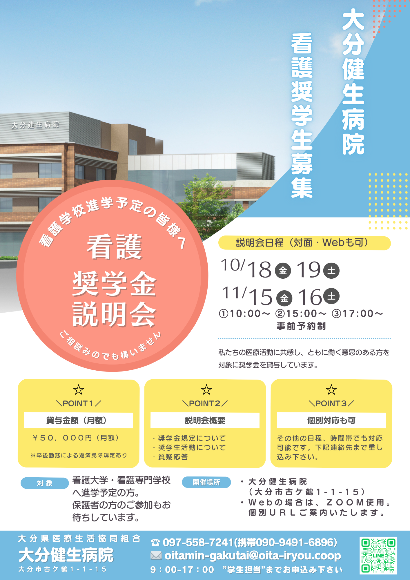 【大分】大分健生病院 看護奨学金説明会 秋開催決定☆