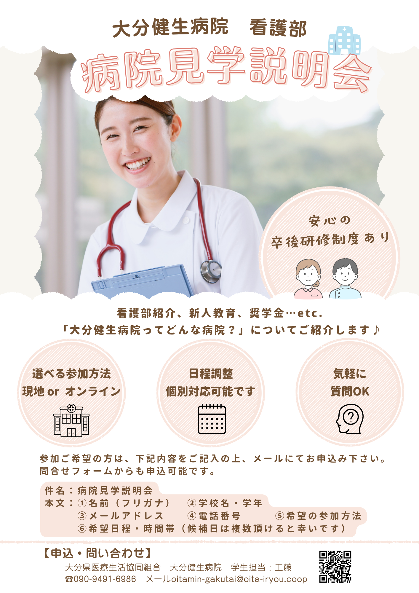看護学生のみなさん、病院見学にぜひお越しください。