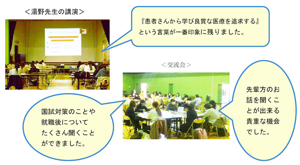 先輩看護師との交流会では、職場の雰囲気や新人教育のこと等の質問がありました。あまり臨地実習に行くことが出来ず、働いている自分の姿をイメージできていない3年生にとって、先輩看護師との交流会はとても有意義な時間となりました。
