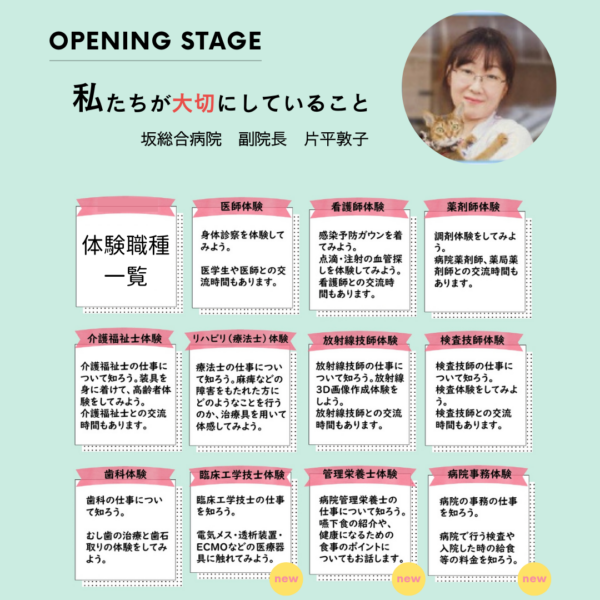 宮城民医連加盟の事業所で、11職種の皆さまにご協力いただき、多職種が一堂に集まってそれぞれのお仕事体験ができるというイベントです。