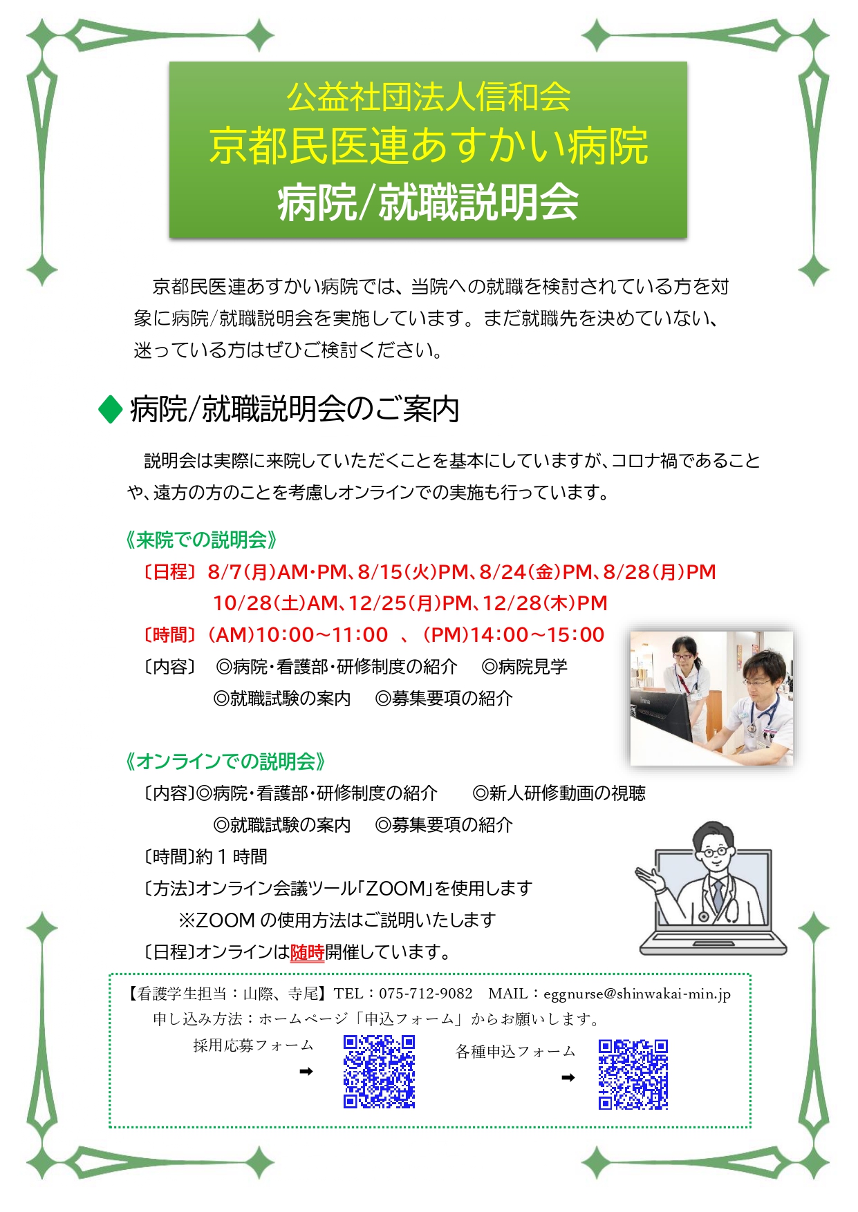 ☆各種お申し込みは、あすかい病院看護部ホームページから http://shinwakai-nurse.com/index.html