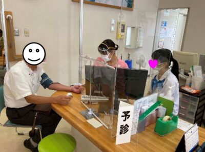1日の参加者8名は、4名ずつ病院とクリニックを交互に体験し、看護師に帯同すると「テキパキ動いていてすごい」との感想が。つるが生協診療所では、予診の場面に立ち会い「患者さんから情報を聞き出して医師が一目で分かるカルテを書いていた」と感心しきり。診察室にも入るなど、医師と看護師、患者さんの雰囲気を間近に見ました。訪問看護師希望の高校生は、利用者様の自宅に伺って「家にあるもので工夫しているのが見れた」と感じたり、看護師にもたくさん質問したりして興味津々の様子でした。(❤は高校生)