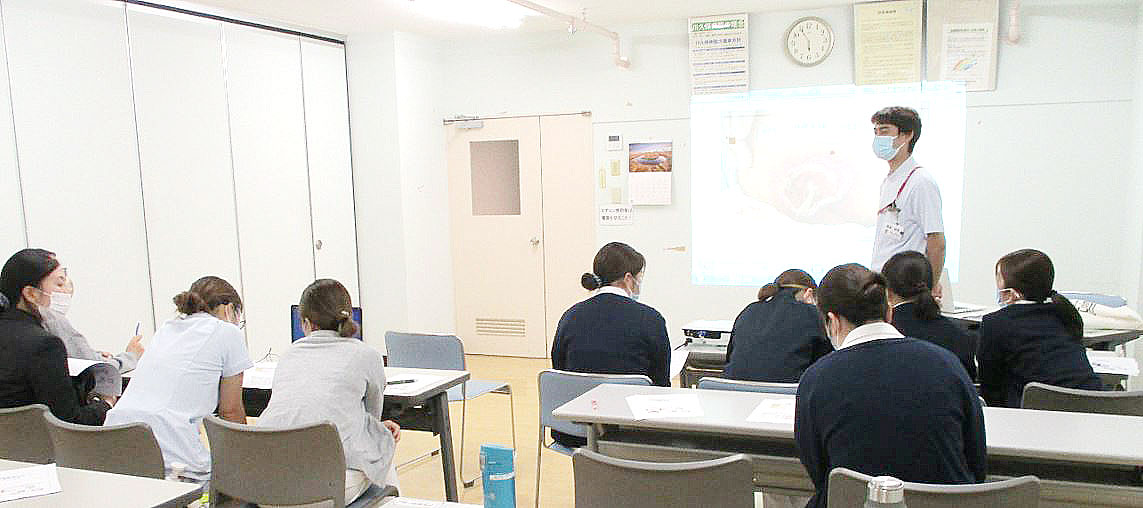 10月の若看は、川久保病院の奨学生も2名参加して一緒に学習しました。先輩看護師とお話も出来るので奨学生と看護師の交流の場にもなりました。