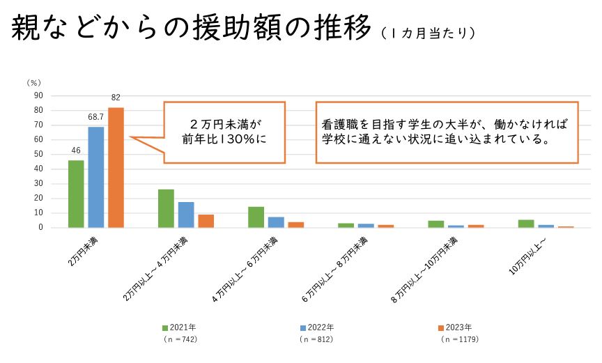 看護学生の学費の負担は?親からの援助額は…|全国実態調査より