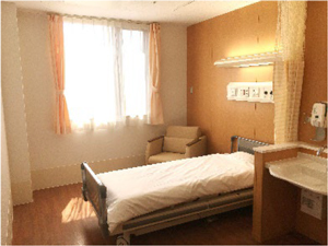 ◎すべての病室が個室で、洗面・洗面・簡易ベッドになるソファを設置しています。患者さん自身のペースで過ごすことができ、ご家族も他の患者さんに気兼ねすることなく付き添えるようになっています。もちろん個室料(差額ベッド代)は徴収していませんし、医療費の支払いに不安がある方には無料低額診療事業の活用相談も行っています。
