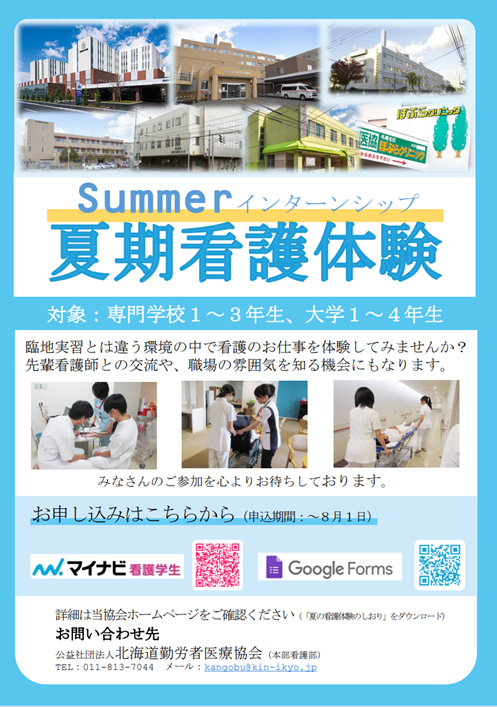 北海道勤医協では、7月下旬~8月Summer看護体験夏期看護体験を行います。