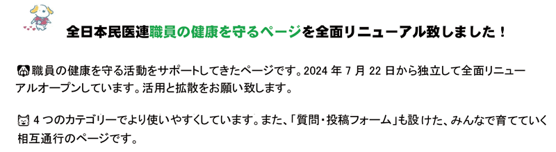 職員の健康を守るページ:https://min-iren.net/kenkomamoru/