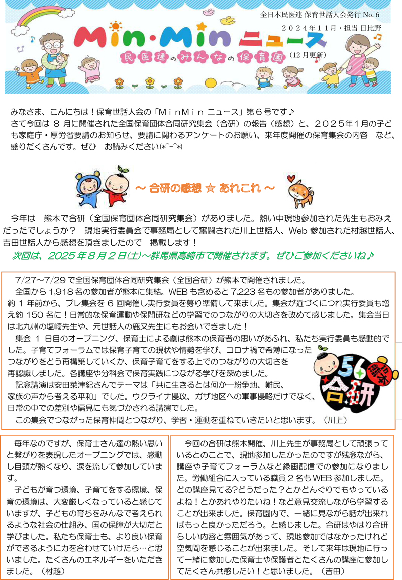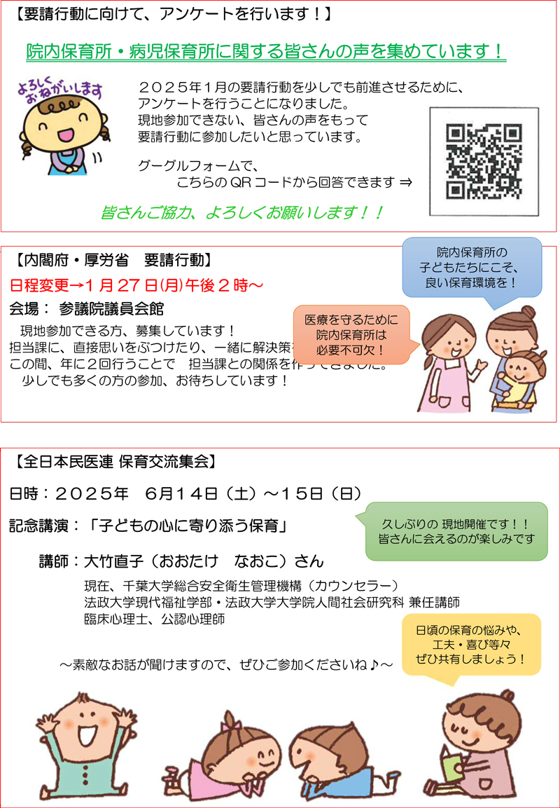▶院内保育所充実に向けた厚労省等要請についてのアンケート(第46期)はこちら