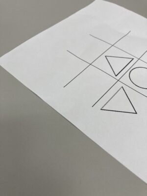 この伝言ゲームは、言葉だけで紙に書いてある図形を伝え、相手に書いてもらうというゲームです。