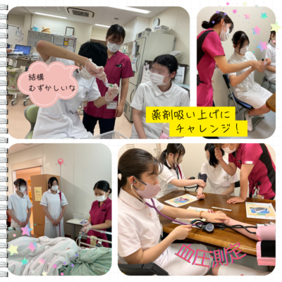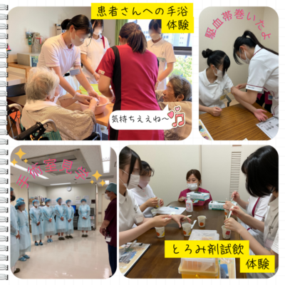 参加された学生さんから「患者さんと関わる時に看護師さんの優しい声掛けや、笑顔で寄り添う姿勢がとても印象に残りました!自分もこんな看護師になれたらいいなと思いました!」
