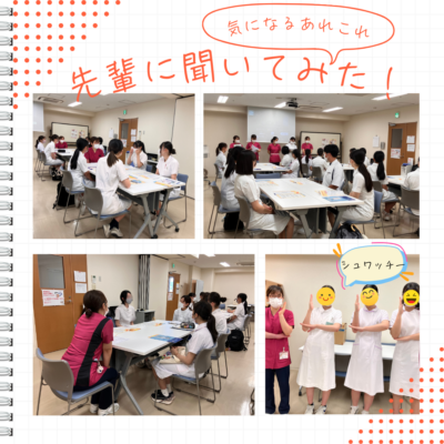 最後は先輩看護師との交流です。学生さんからの質問に答えながらワイワイ交流できました。
