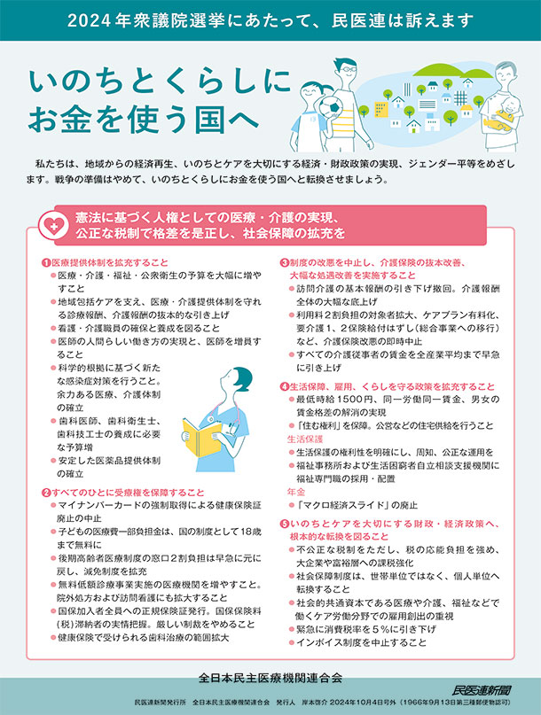 2024 年衆議院選挙にあたって、民医連は訴えます
