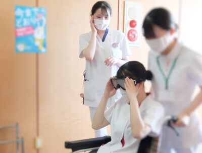 高校生からは、「看護師をめざしたいという気持ちがさらに大きくなった。」「白衣を着て実際に疑似体験をしたり高齢者の方とお話したりしてすごく気持ちが入りました。」などの感想がありました。