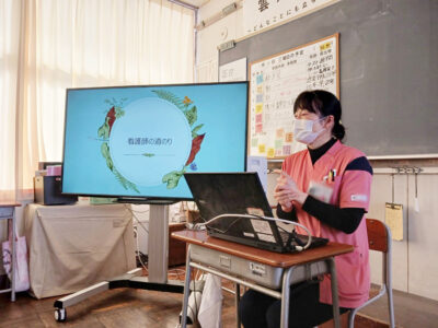 今回たくさんの中学生さんに看護師という職業に興味をもってもらえ、話をずっとキラキラした眼で聞いてもらえたことが本当にうれしかったです。