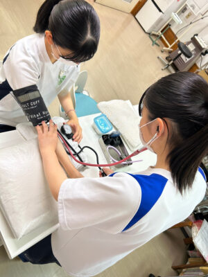 午前中は診療所で診察や処置室の見学、バイタルサイン測定や車いす操作など興味を持ってもらえるよう内容を検討しました