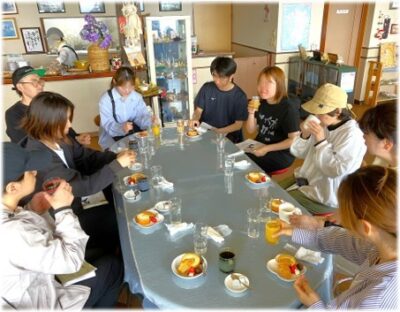フェリーで池島に渡り炭鉱に入るという非日常的な経験を共有したおかげで、とてもうちとけた雰囲気の中、お互いの学生生活や仕事について楽しく話をしていました。