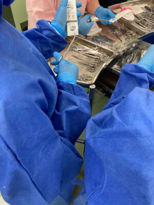 手術室見学では、手洗いやガウンテクニックを教えて頂きました。