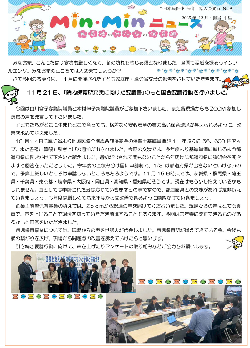 MinMinニュース|民医連のみんなの保育園 No9